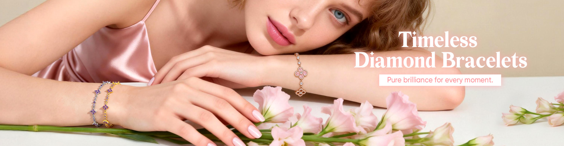 67% OFFElegant Pink Four-Leaf Flower Bracelet – Adjustable Rose Gold Chain -