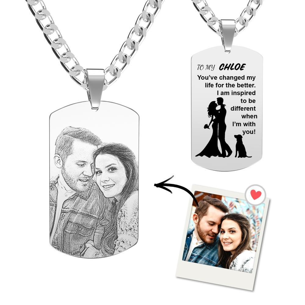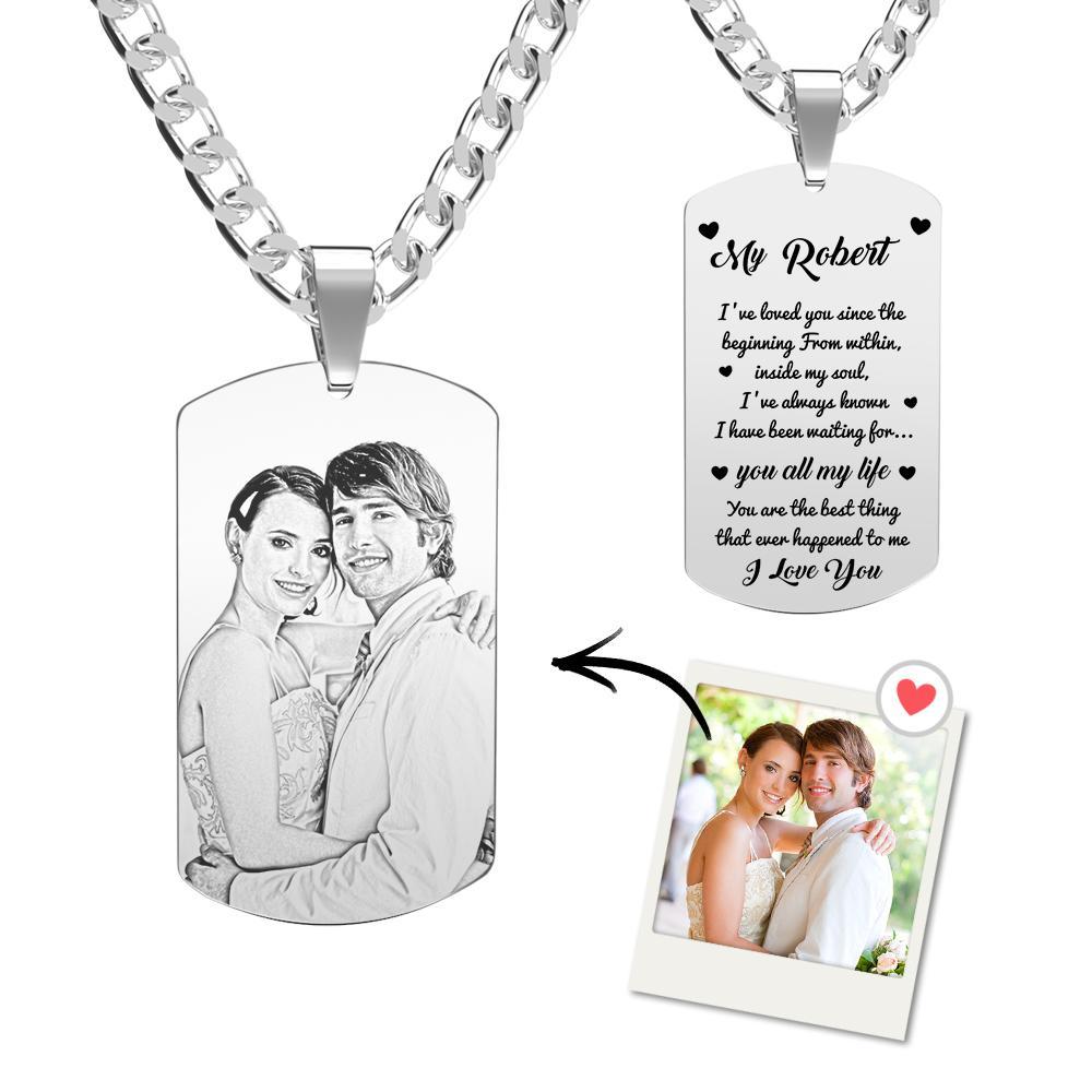 50% OFFTag Necklace Photo Engraved Necklace Gift From Love Message Anniversary Gifts for Him