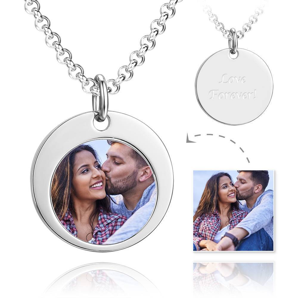 34% OFFUnisex Elegant Round Photo Engraved Tag Necklace With Engraving Stainless Steel -