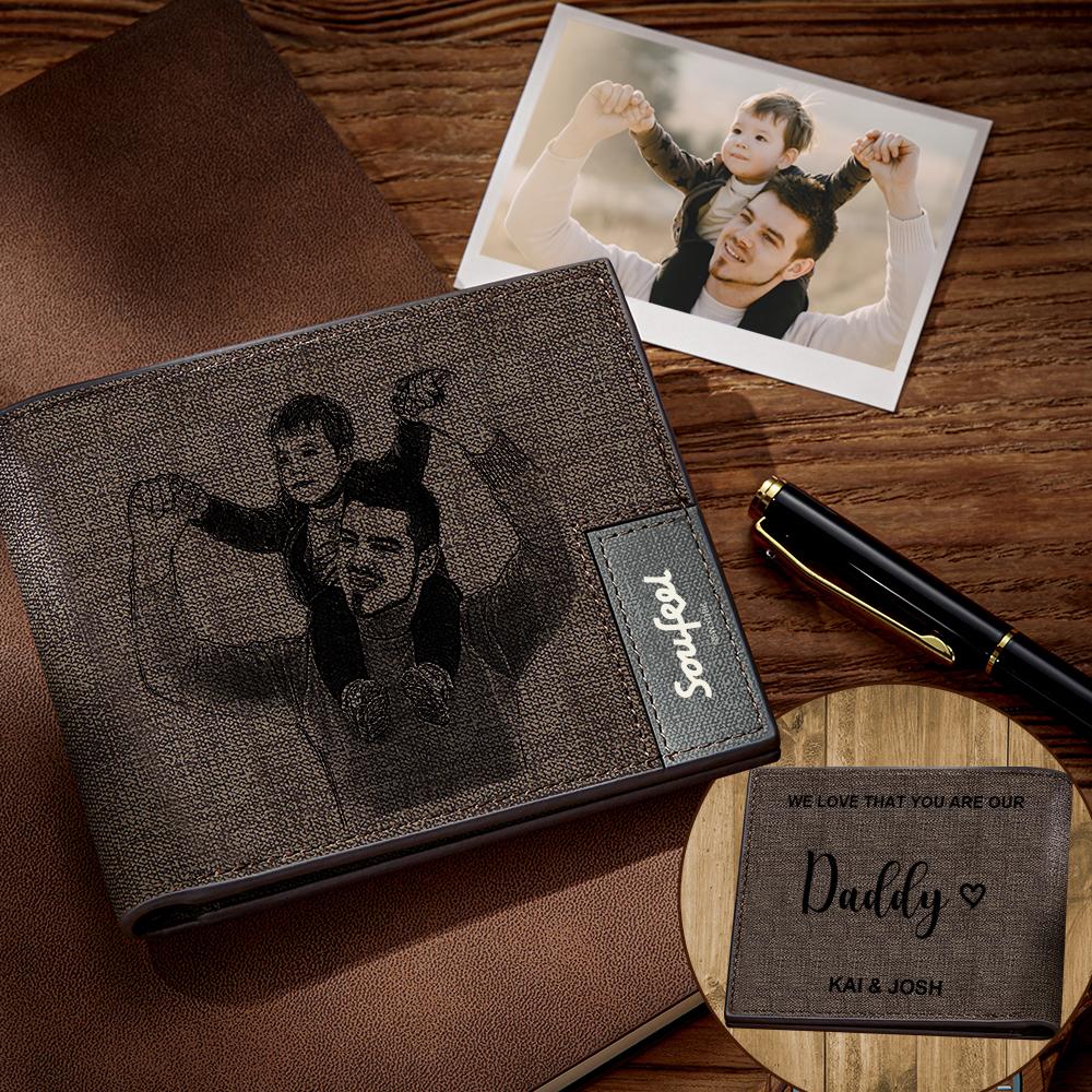 48% OFFCustom Photo Engraved Wallet Short Style Bifold, Gift for Him - Coffee Leather -