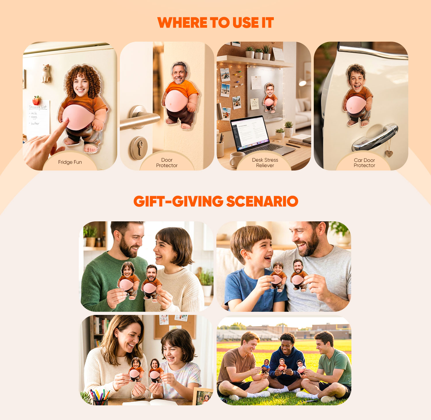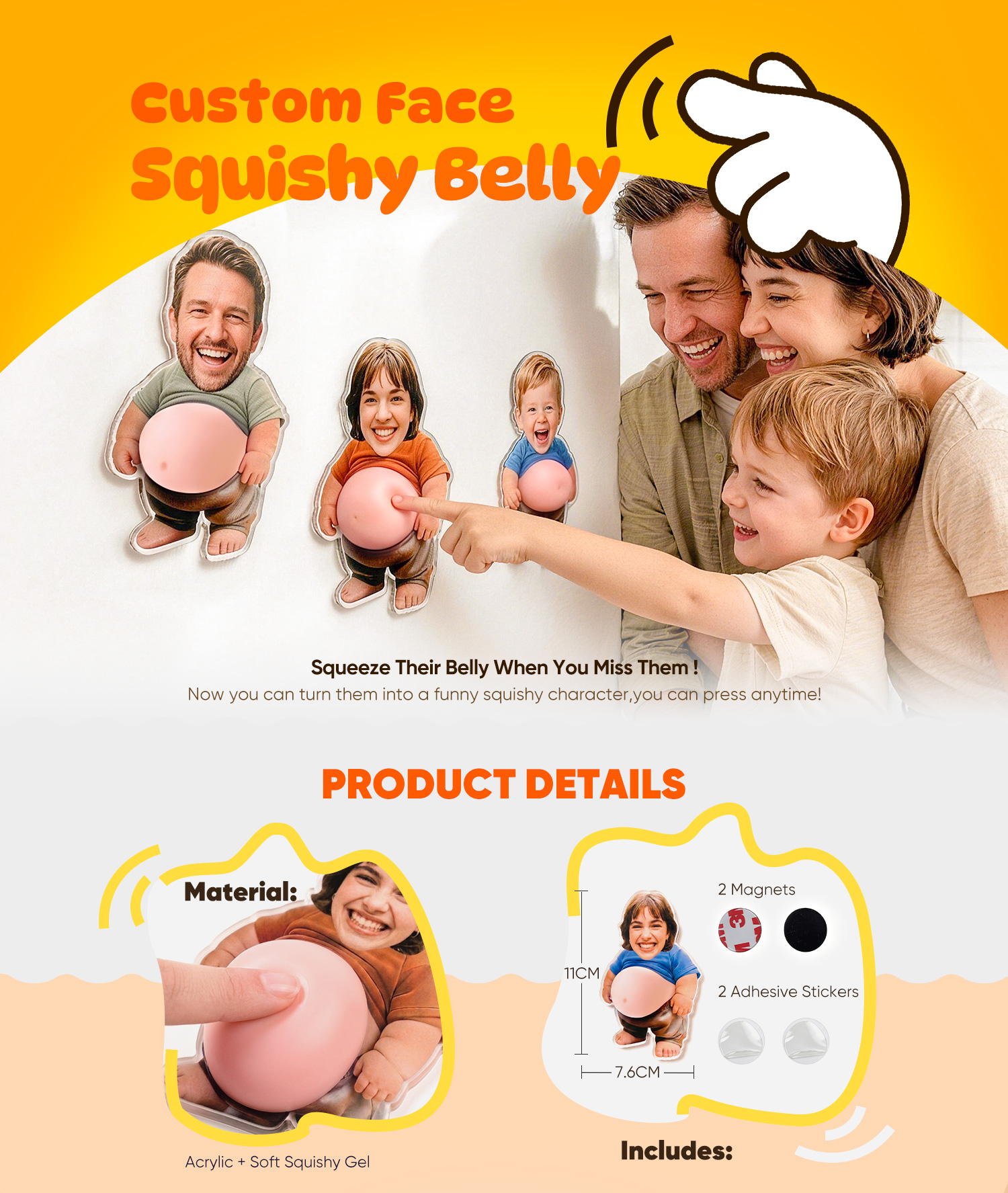 This custom face squishy belly car stickers lets you upload a photo, crop the face, and turn it into an adorable character with a soft, squeezable belly.