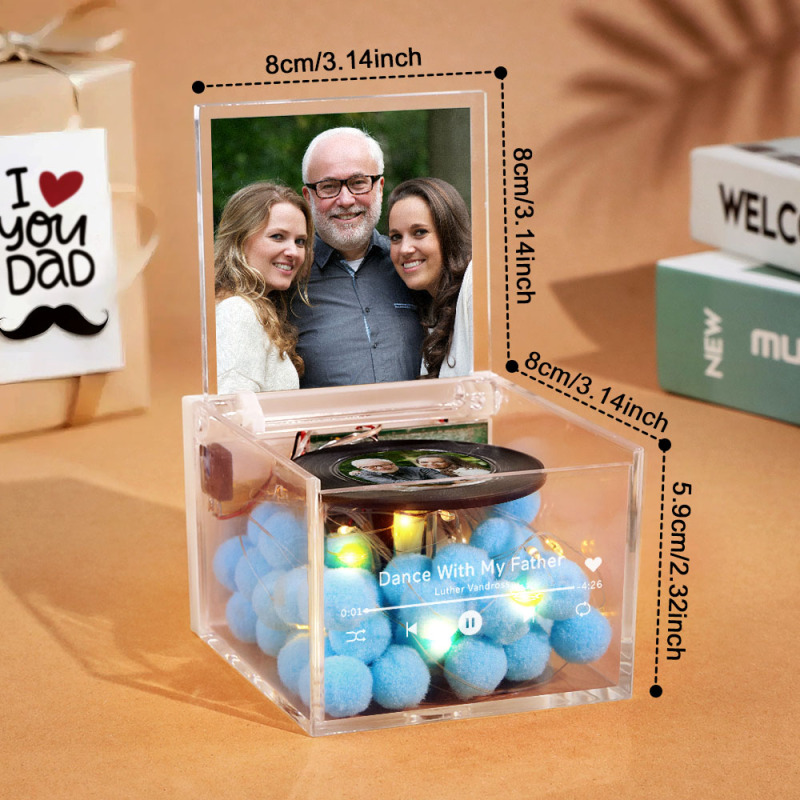 Bring a touch of nostalgia and personalization into your space with this Mini Music Record Player Custom Photo with Light Personalized Music Box. Designed to look like a vintage record player, this music box is more than just a decorative piece—it's a heartfelt keepsake that combines your cherished memories with soothing melodies.
