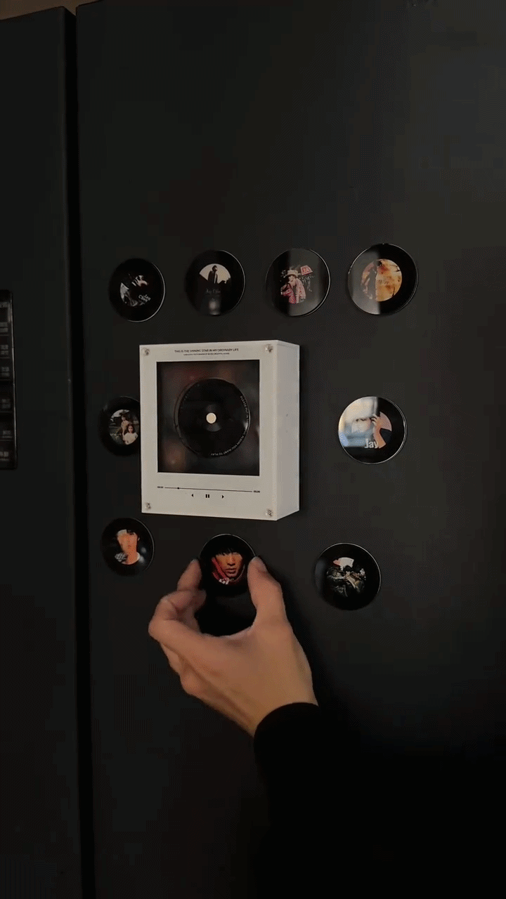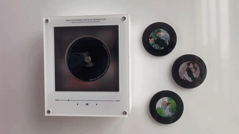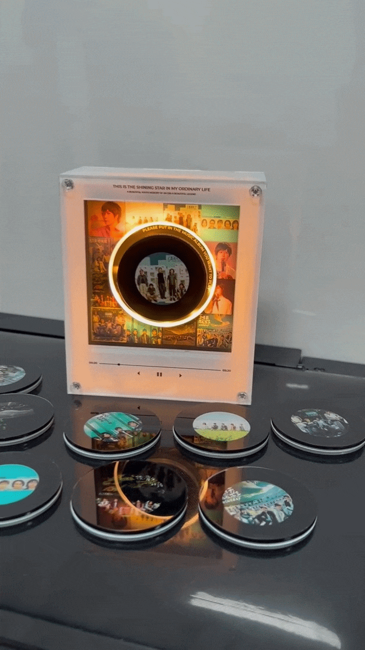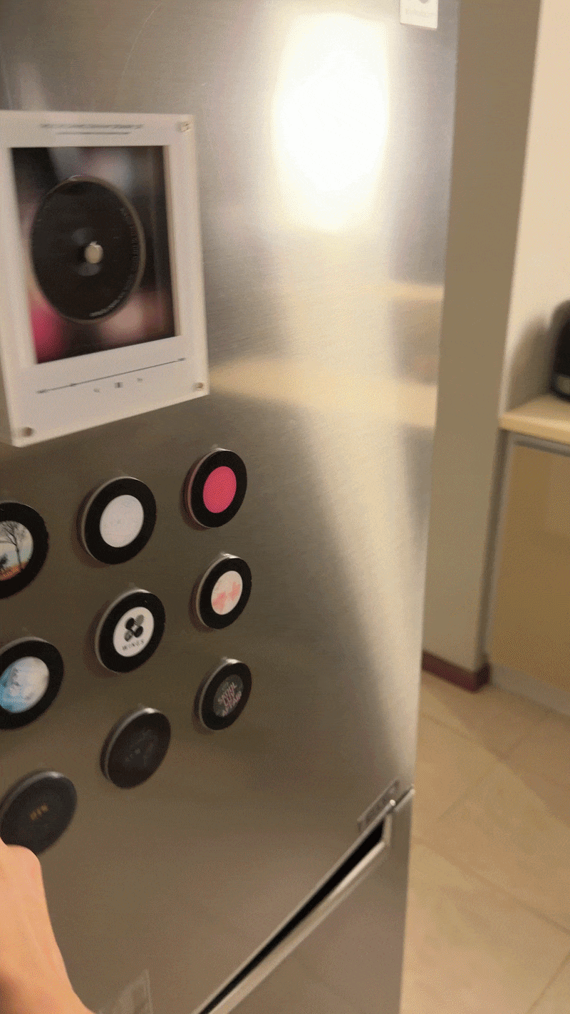 Discover the Custom Photo Music Fridge Magnet - a multifunctional, high-tech fridge magnet that adds personality and convenience to your kitchen. This innovative magnet features an NFC sensor for quick pairing, a rotating display that showcases your favorite memories, built-in night light for subtle illumination, and replaceable records for endless customization. It’s a stylish blend of memory, music, and practicality in one sleek accessory for any fridge.