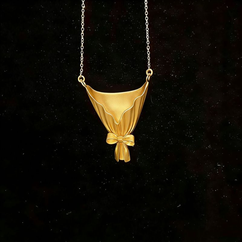 Inspired by the idea of a “bouquet frame”, the designer leaves the final touch to you. This necklace invites you to complete your own creation: place a small flower from the morning market into the pendant, and change it with the seasons — a wild daisy, a sprig of mint, a lily of the valley, or even a dried twig.