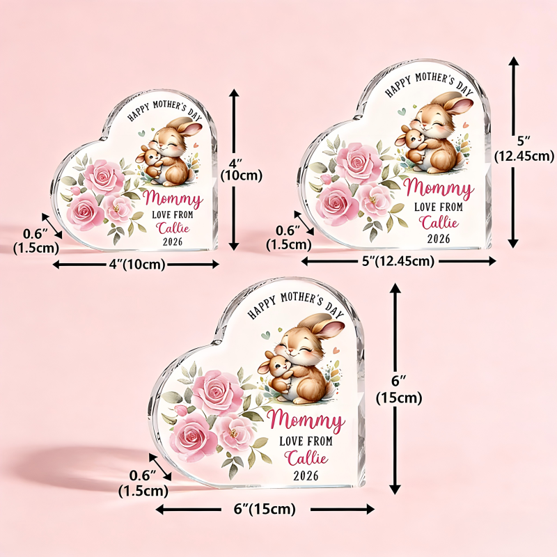 Surprise mom with this adorable Personalized Happy 1st Mother's Day Heart-Shape Acrylic Plaque! Featuring a cute bear & mom design, vibrant pink roses, and engraved details like "Happy 1st Mother's Day", "Mommy", and a custom name (e.g., Amelia) + year (2026). Crafted from high-quality, clear acrylic with polished edges, it’s durable, scratch-resistant, and perfect for displaying on desks, shelves, or tables. This heartfelt keepsake makes a thoughtful Mother’s Day, birthday, or new mom gift. Customize it with her name and special date to create a one-of-a-kind tribute she’ll cherish always.