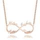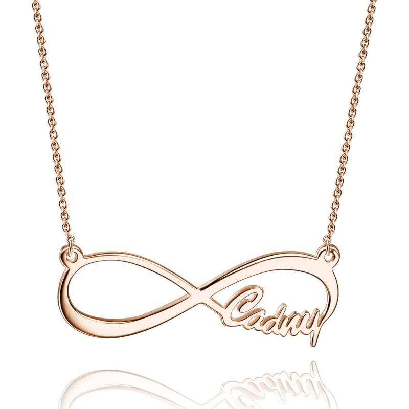 Our Infinity Name Necklace provides the best way for you to show off what the word forever means to you. You can get up to two names or words on each loop of the infinity symbol. This is the perfect Personalized infinity necklace to wear. Get your name and your significant other on this name necklace. You can also get the names of best friends, inspirational words, children, or anything else you can think of. This customized infinity necklace makes a great gift to give someone.