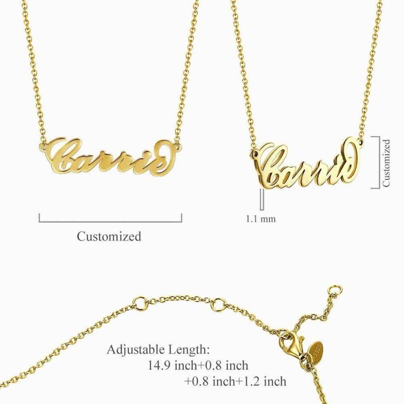 قلادات الأسماء ضرورية لكل امرأة عصرية. لديهم شعور ممتع وشخصي لهم. بالإضافة إلى ذلك، فإن قلائد اسم سوفييل متعددة الاستخدامات بما يكفي للارتداء اليومي. ارتديها بمفردها أو ضعيها في طبقات للحصول على مظهر أكثر جرأة. اعتمادًا على النمط الذي تحصل عليه، يمكنك تخصيص قطع Soufeel بالأحرف الأولى أو اسم واحد أو اسمين. هناك قلادات لا متناهية مخصصة، وقلادات تحمل اسمًا قديمًا، وقلادات شريطية حديثة. بالإضافة إلى الحصول على اسمك الخاص، هناك خيارات أخرى تتمثل في الحصول على اسم صديقك أو صديقك المفضل أو حيوانك الأليف أو والدك أو حتى الكلمة المفضلة التي تستخدمها للإلهام. قلادة على شكل اسم "كاري" مطلية بالذهب عيار 14 قيراطًا وفضة.
