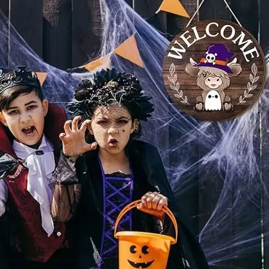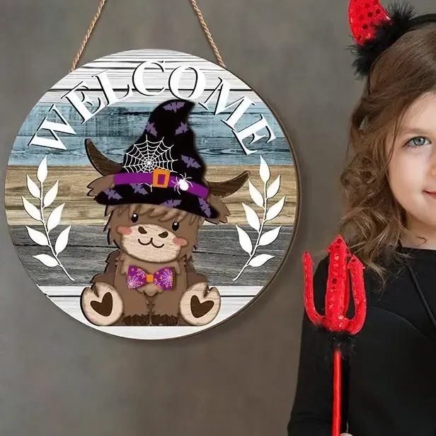 Interchangeable Highland Cow Welcome Sign for Holiday Seasonal