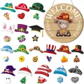 These cute set include 1 round sign + 17 magnetic hats and 17 accessories. So cute interchangeable seasonal decor for your home!