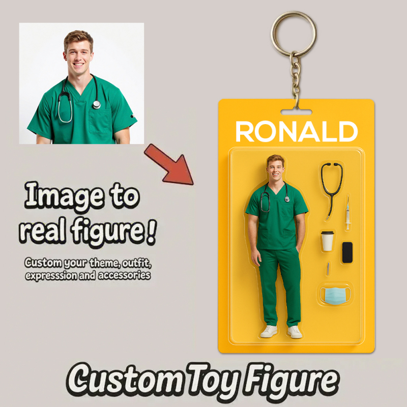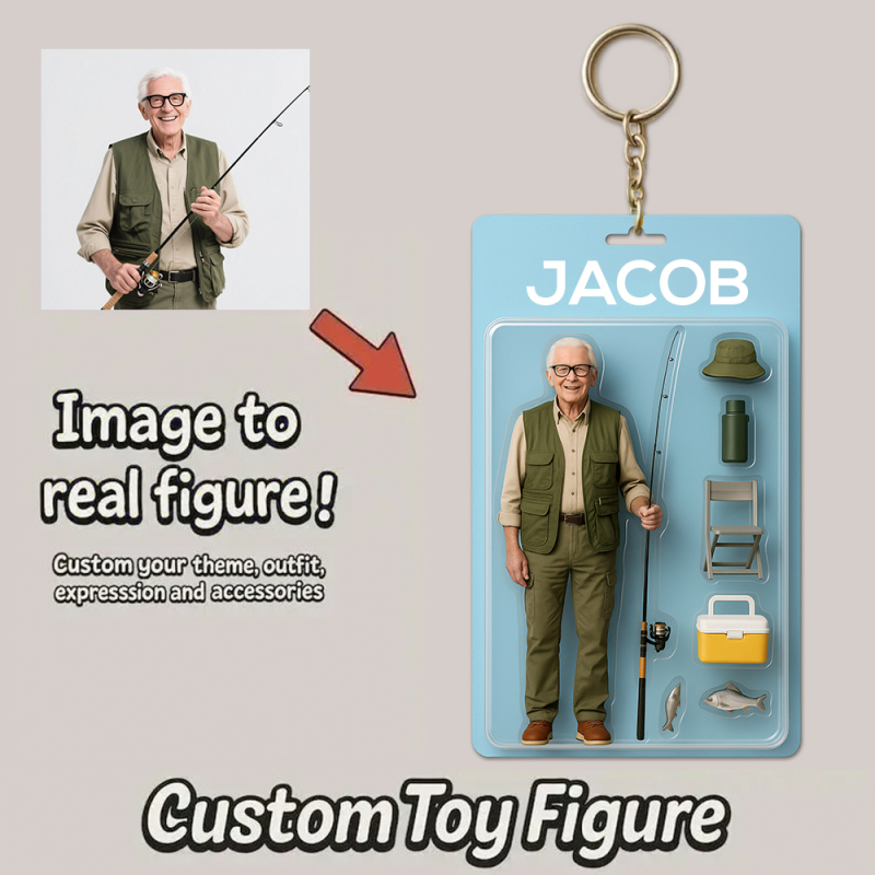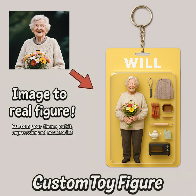 Custom Action Figure Pack Packaging Toy Box Style Art Gift Personalized Acrylic Keychain Gift for Family