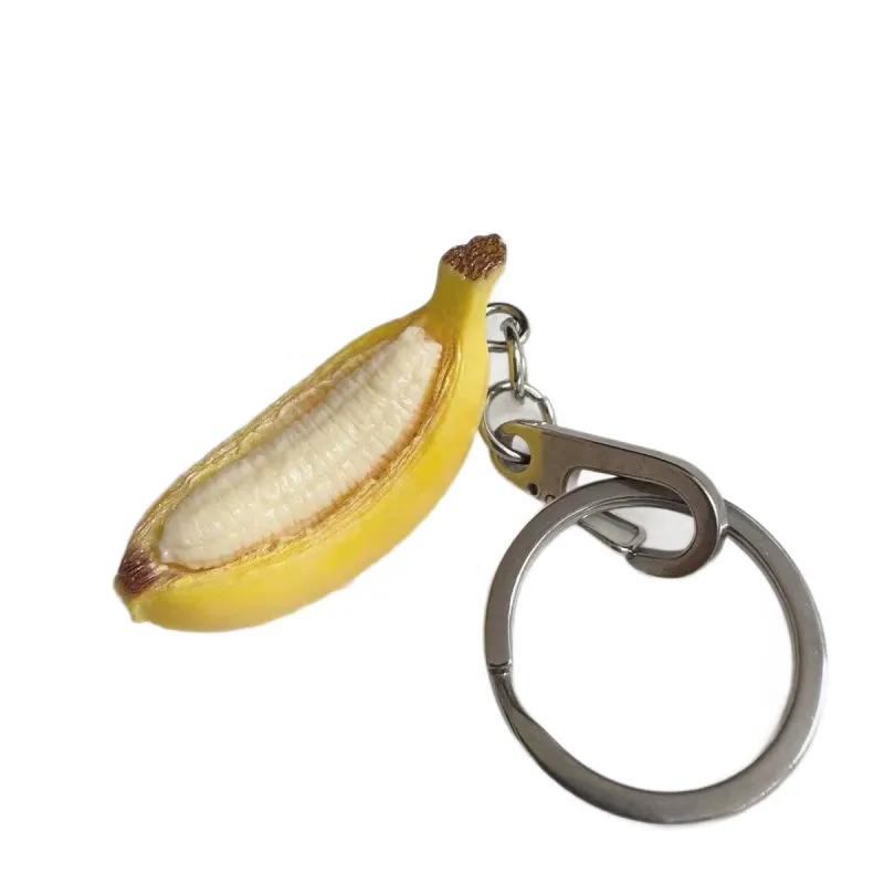 Made from durable, high-quality resin with a smooth, long-lasting finish, this keychain is built to withstand daily use without fading or damage. It comes with a sturdy silver-toned metal keyring and carabiner clip, making it easy to attach to your keys, backpack, purse, or luggage. Whether you're a student looking for a cute bag accessory, a fruit lover, or just someone who loves quirky, unique items, this banana keychain is the perfect pick.