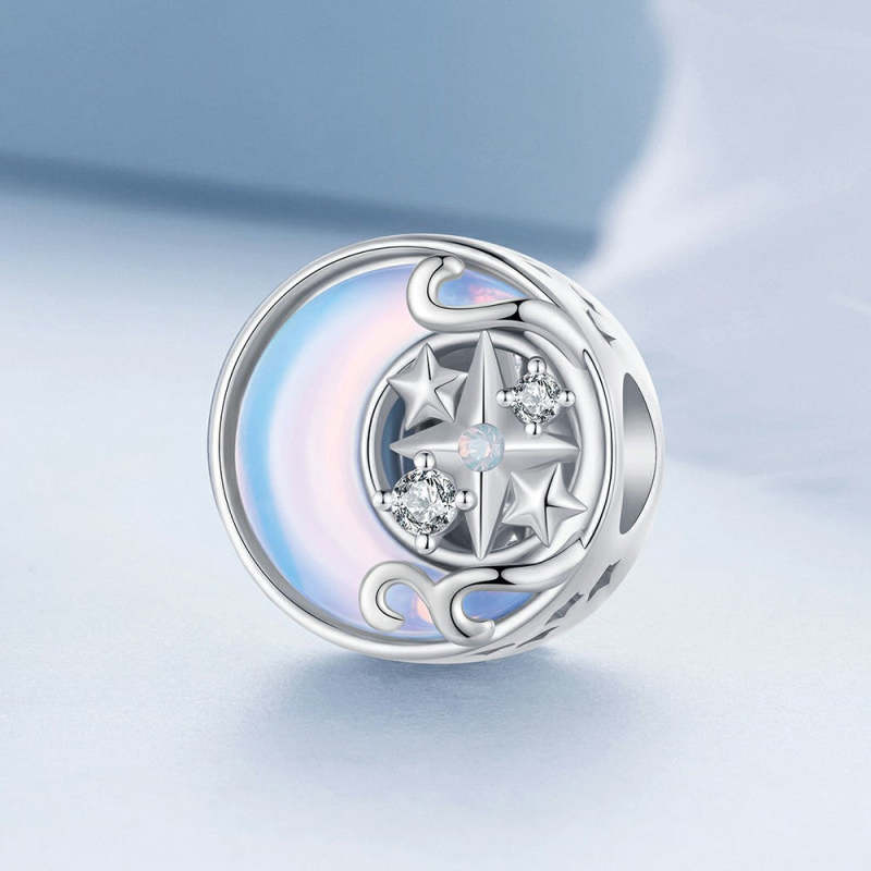 Aurora Stars Moon Charm Silver