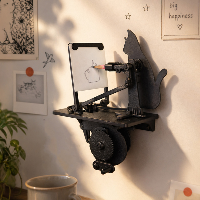 The Automatic Drawing Cats Device is a whimsical, hand-cranked drawing machine that brings feline-inspired art to life. Simply turn the hand crank to set the device in motion, and watch it glide through a series of carefully choreographed lines that capture the playful elegance of cats. This compact, ingeniously engineered machine blends art and engineering, turning blank canvas into kinetic sketches with charming, repeatable precision.