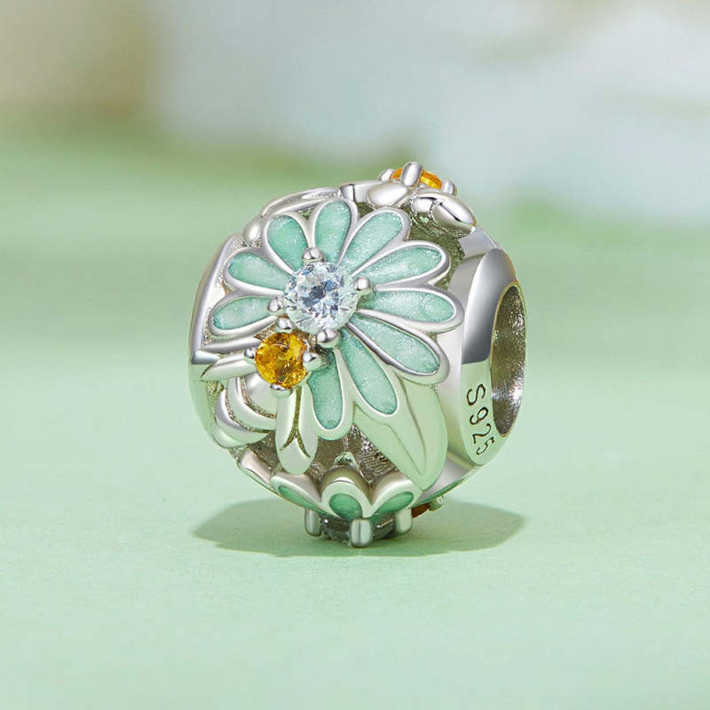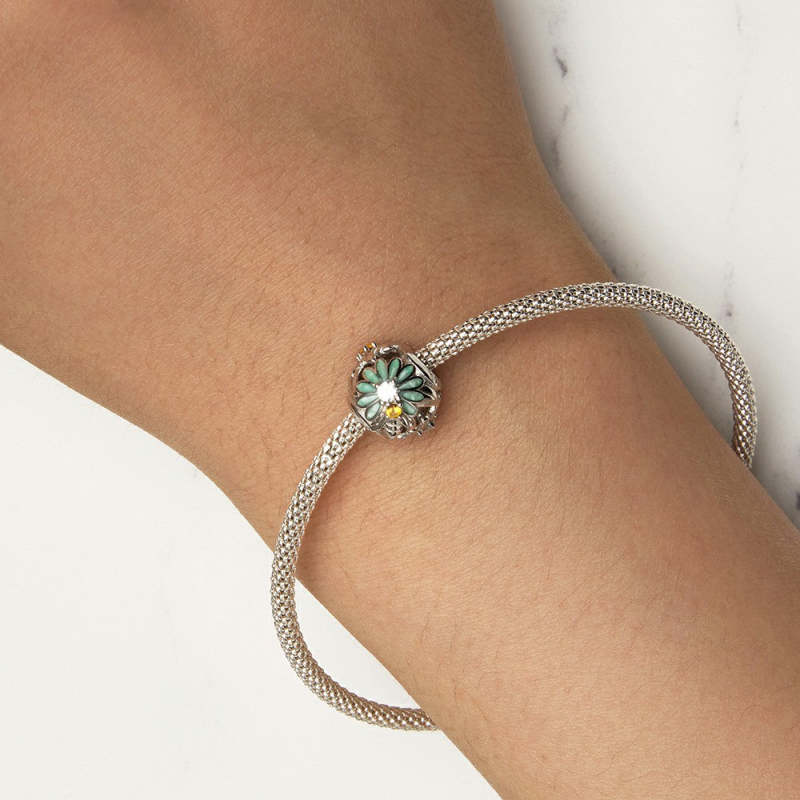 Bee Daisy Charm Silver