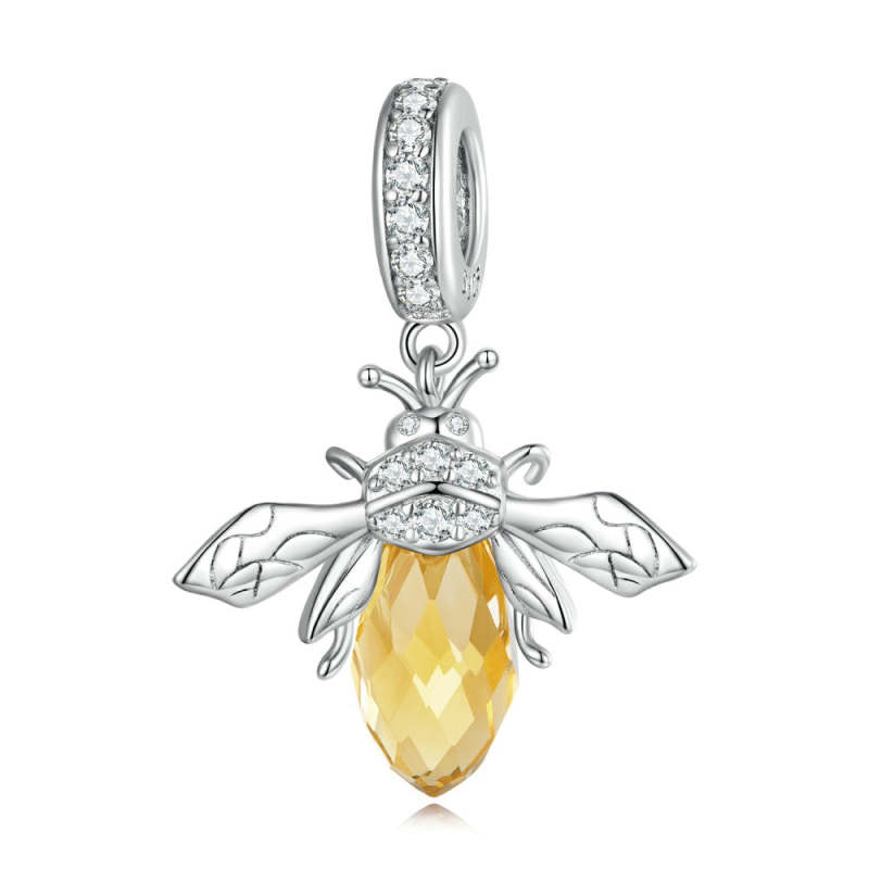 Bee Yellow Dangle Charm Silver
