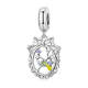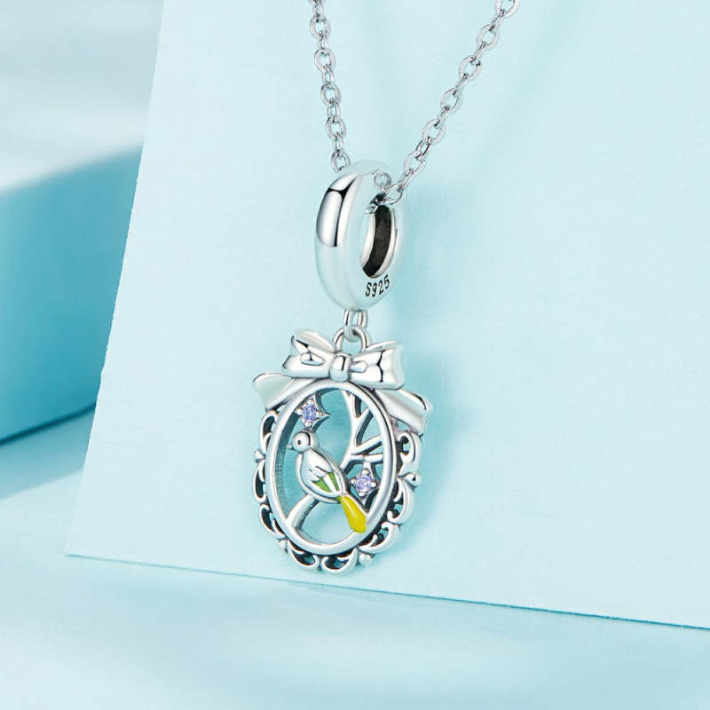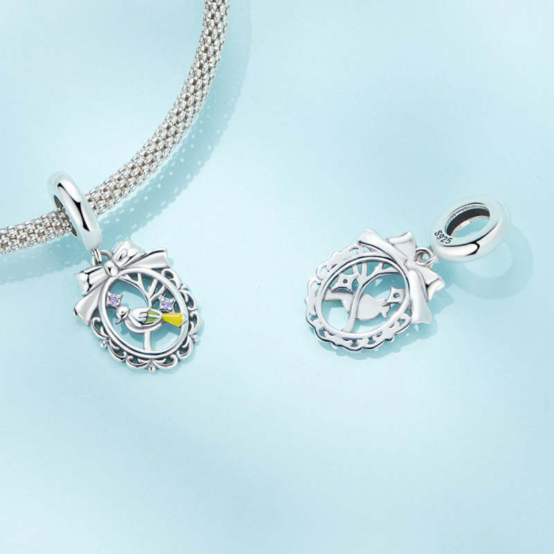 Bird in Mistletoe Round Ring Dangle Charm Silver
