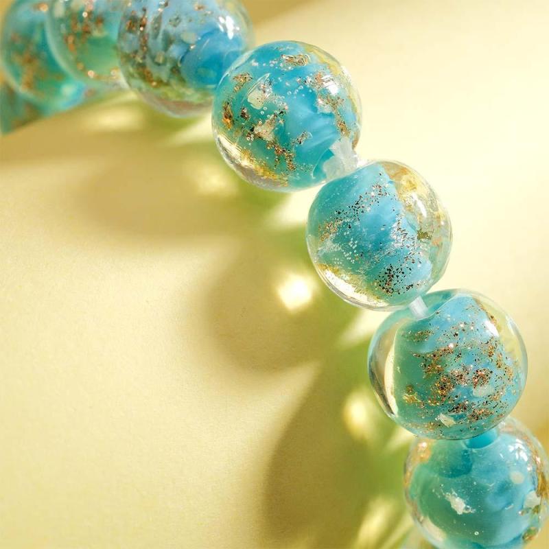 Blue-Green Firefly Glass Stretch Beaded Bracelet Glow in the Dark Luminous Bracelet