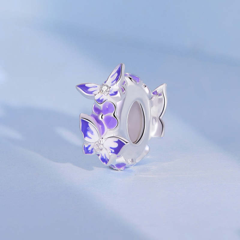 Butterflies Stopper Charm Spacer Charm Silver