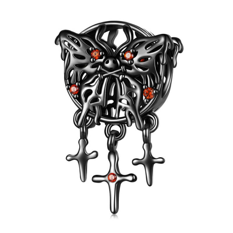 Butterfly Dream Catcher Red Zircon Charm Silver