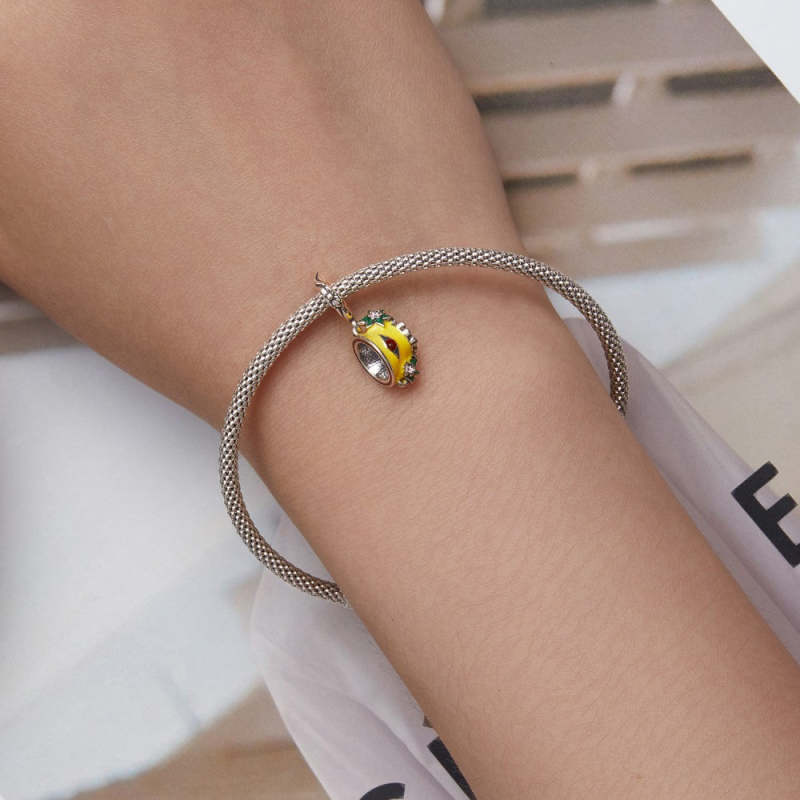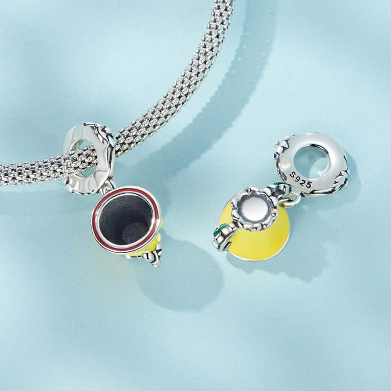 Christmas Evil Eye Cup Enamel Dangle Charm Silver