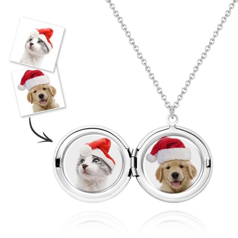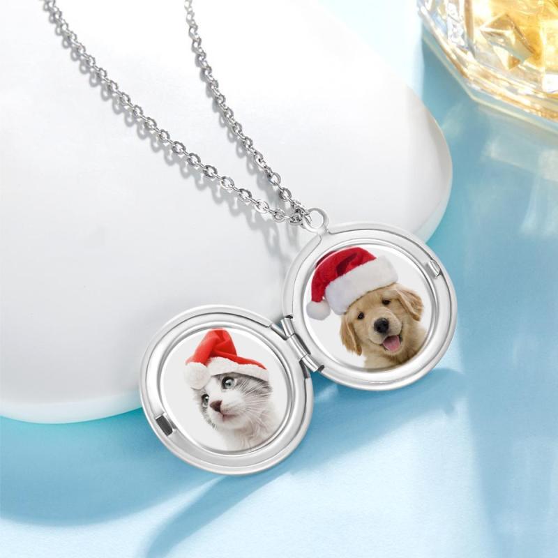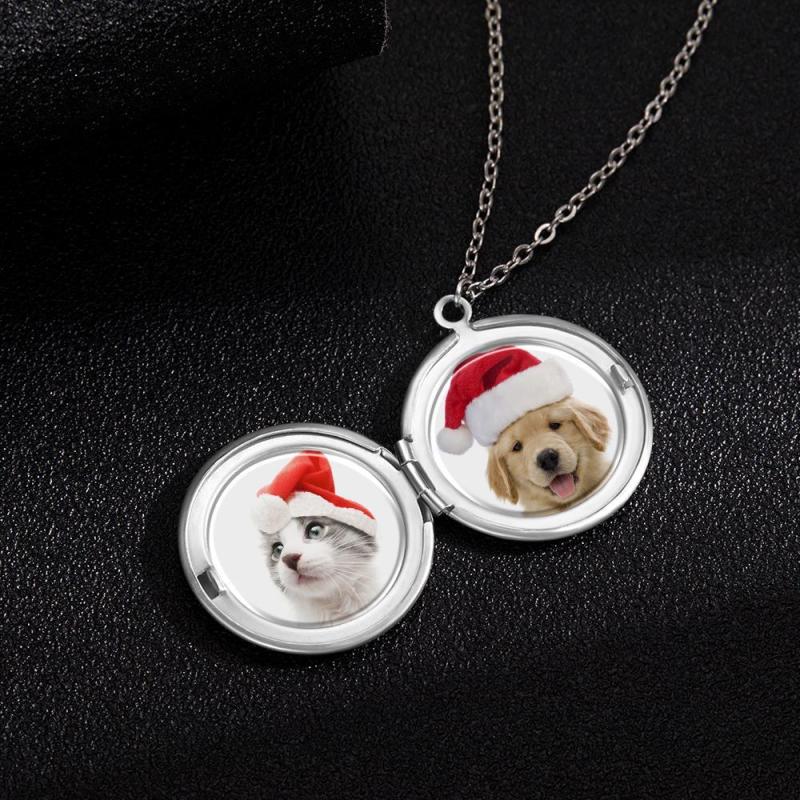 Christmas Gifts Custom Photo Necklace With Two Pictures Silver Color Chain Gifts Ideas Cute Pet