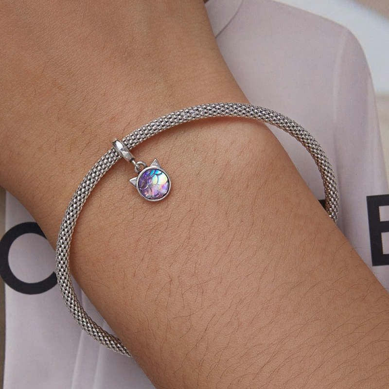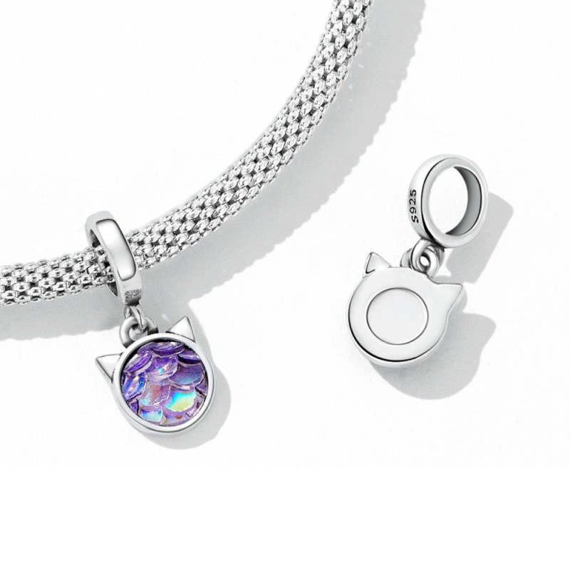 Colorful Kitten Dangle Charm Silver