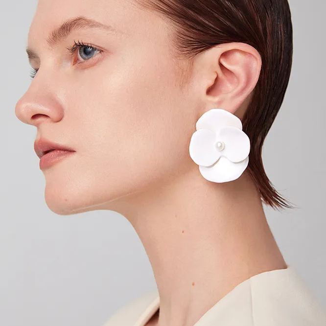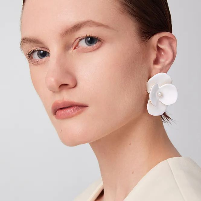 The earrings use the poppy's most basic four-petal round petal shape, with higher-quality bright polishing technology in metalworking, and natural freshwater pearls in the middle to shape the stamen, reflecting the gentle texture. The hand-embossed stamen shape reflects nature and craftsmanship. The texture highlights the elegant retro temperament.