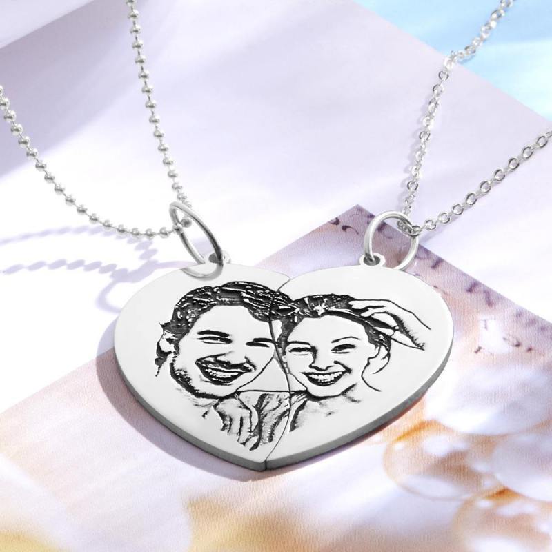 Couples Necklace Set Broken Heart Necklace for Couples Silver