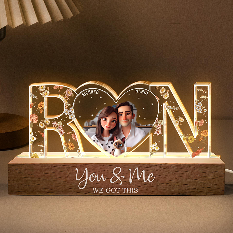 Personalized LED night lights show love, perfect for couples! Whether you're buying it for an anniversary, Valentine's Day or a special occasion, this custom nightlight is a beautiful and thoughtful gift. "You and Me" is printed on the base, and you can customize the text below.