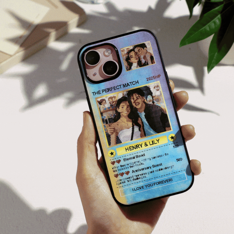 Turn your love story into a collectible card! Upload 3 of your favorite photos and we’ll transform them into a vibrant anime-style phone case with a playful trading card design. Choose from multiple background colors to match your vibe. A unique and fun way to keep your memories close and showcase your perfect match wherever you go.