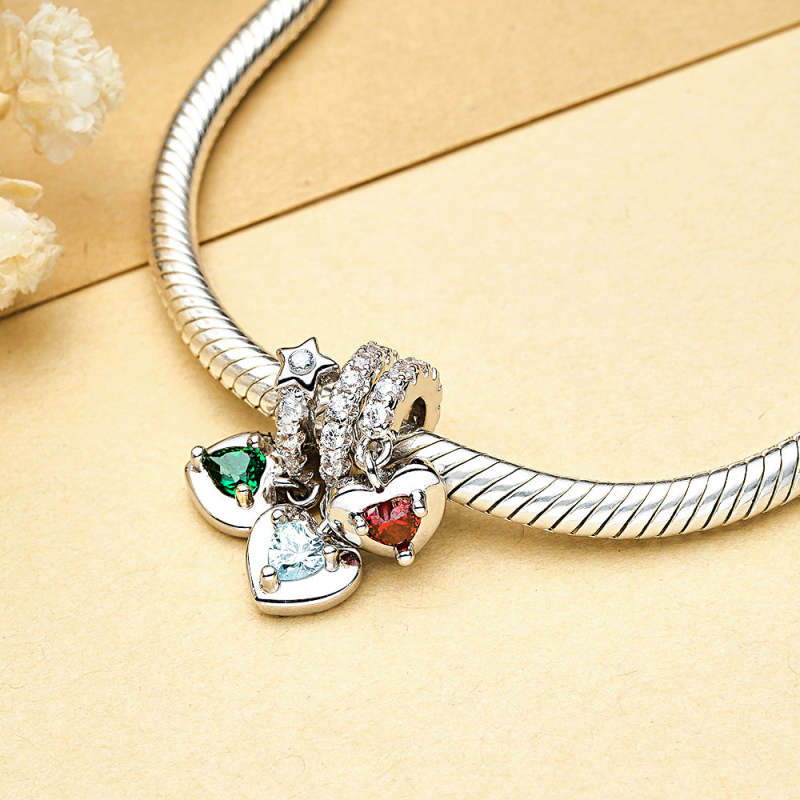 Custom Birthstone with Personalized Names Charm Heart Wings Gifts for Mom