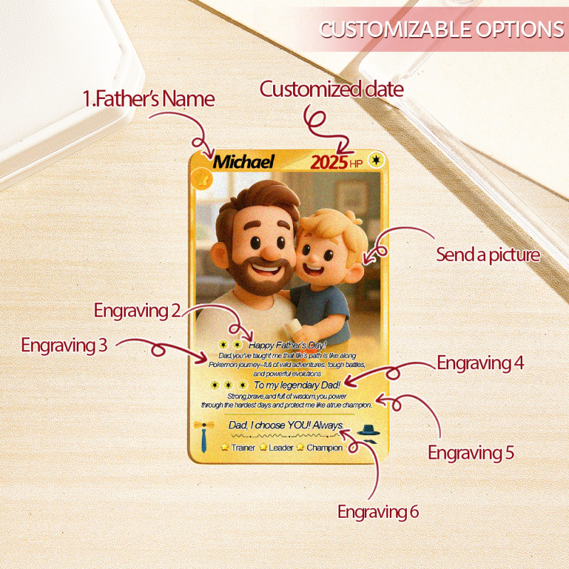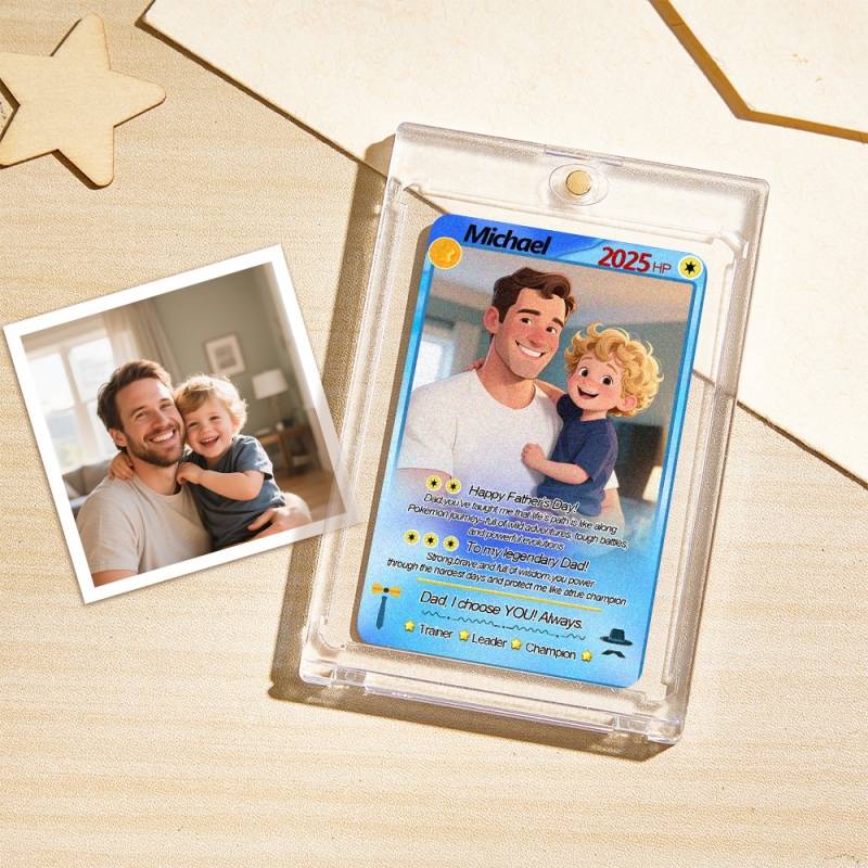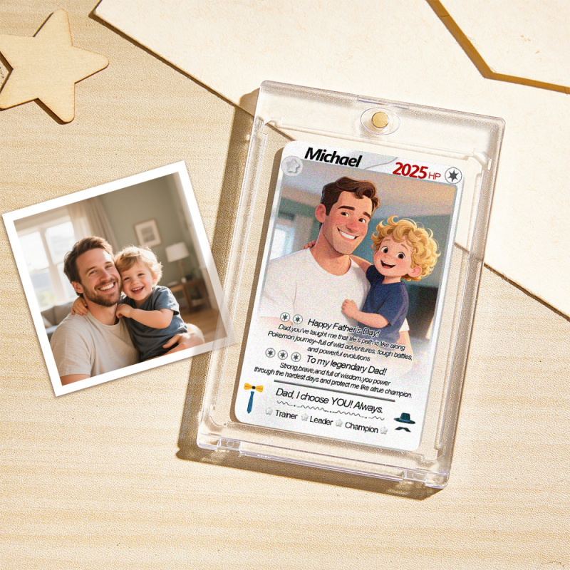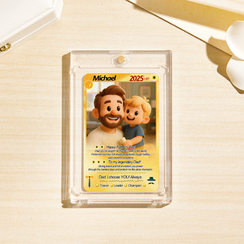 This Father’s Day, surprise Dad with a custom card. Whether he’s a lifelong fan or just your personal hero, this one-of-a-kind card captures his greatness in true Trainer style.