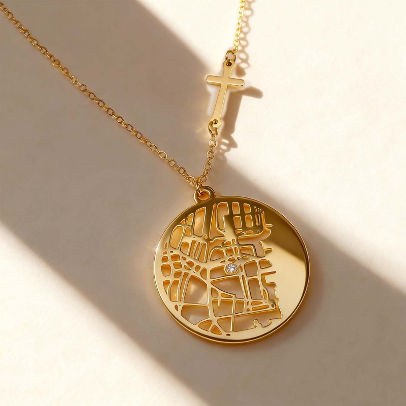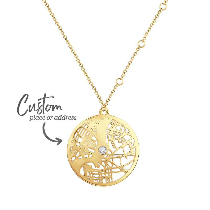Custom Cherished Spot Map Necklace Gemstone Necklace Gift for Her Anniversary Gift