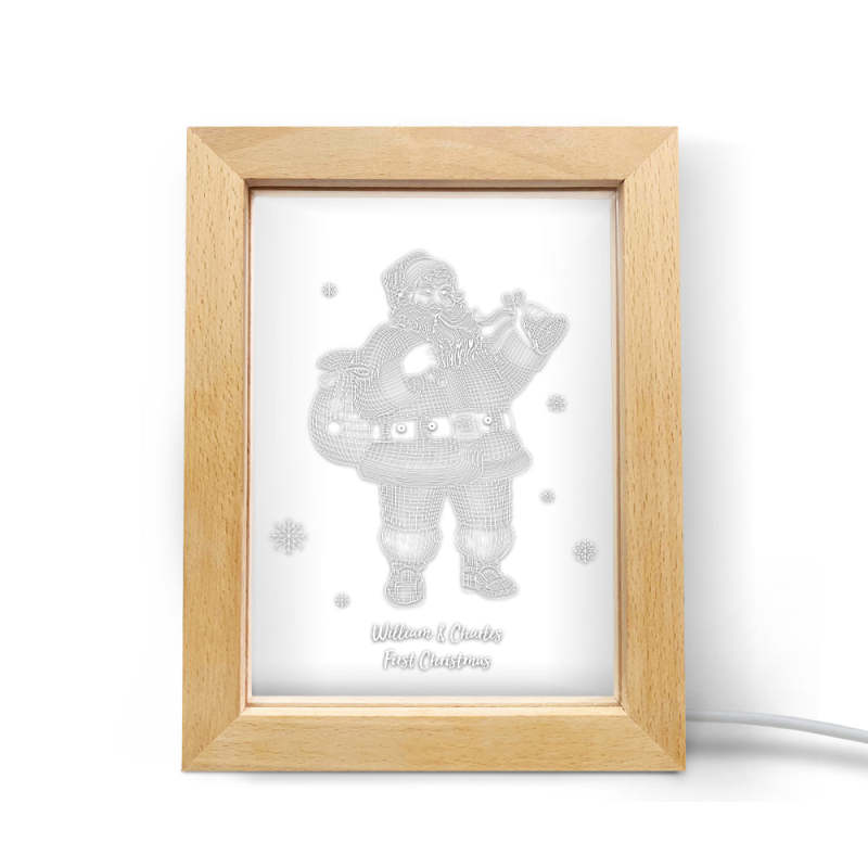 Custom Christmas Night Light Personalized 3D Santa Claus Wooden Frame Lamp Gift