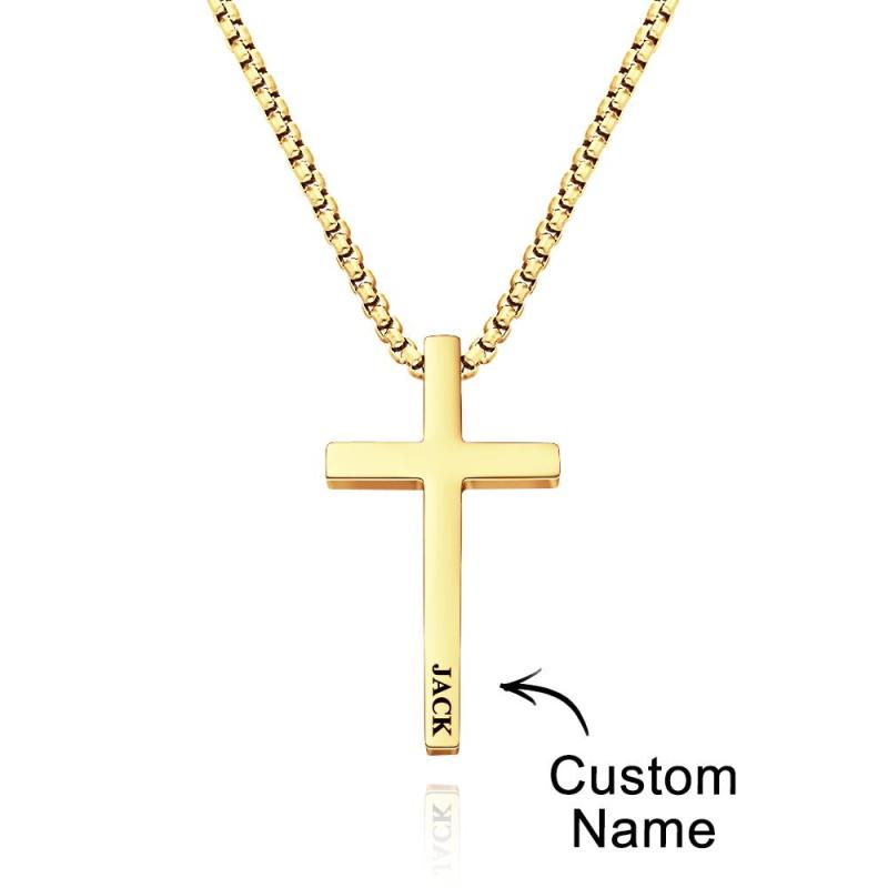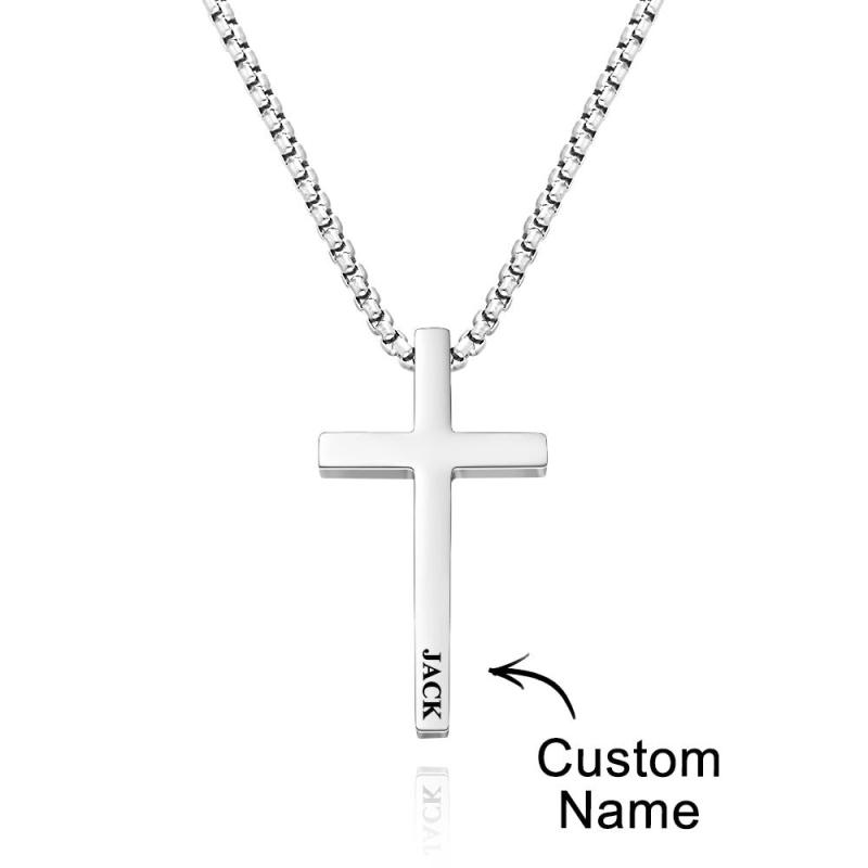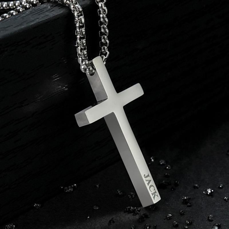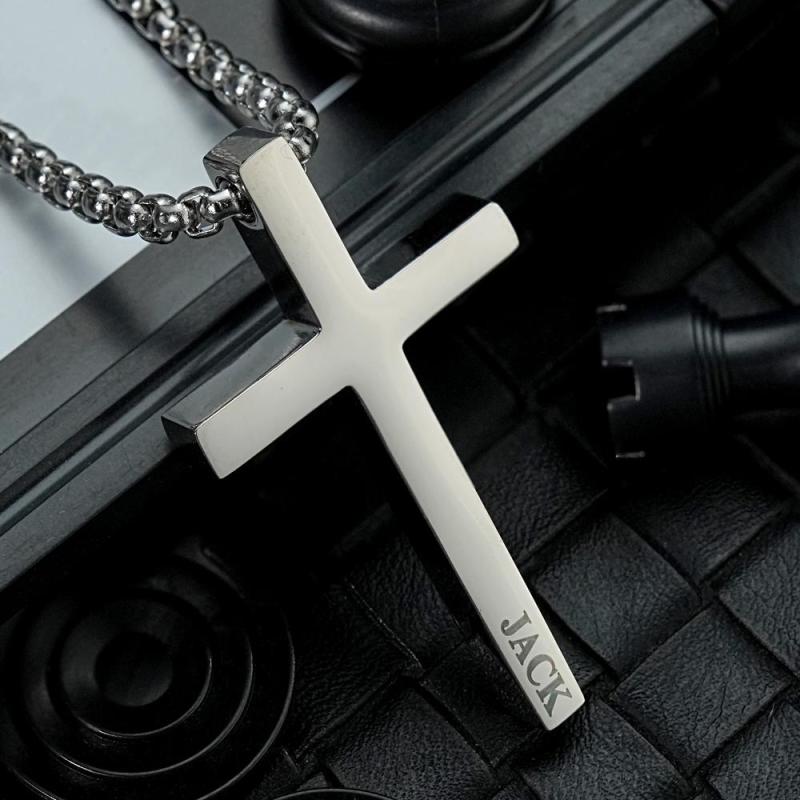 Custom Cross Necklace Engraved Necklace Men's Punk Pendant Necklace Baptism Christian Bible Verse Gifts Gift For Him