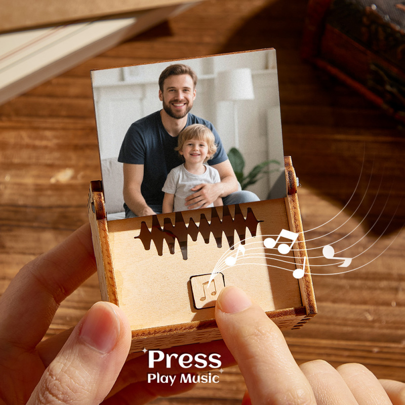 Custom Digital Music Box Any song Tune or Voice Personalized Wooden Photo Music Box with Text Father's Day Gift