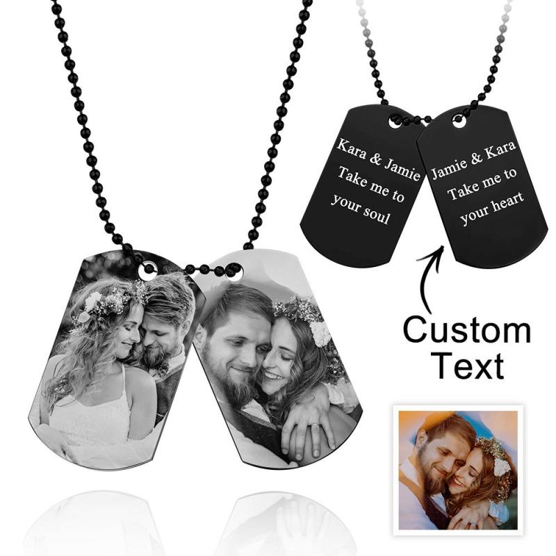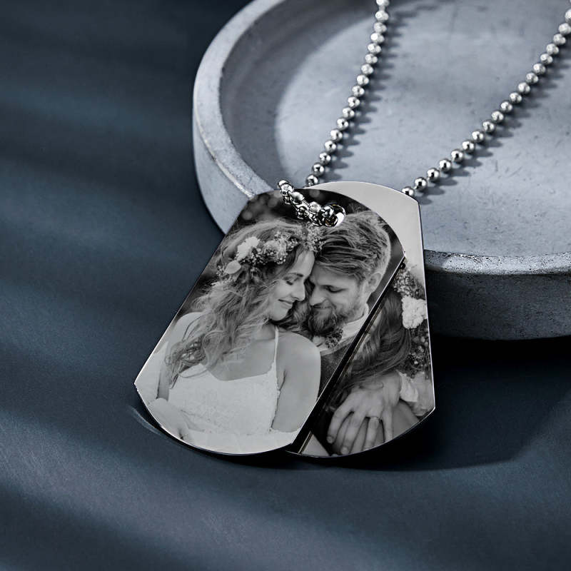 *Custom Double Dog Tag Necklace Same Price as Single Dog Tag Necklace. Our personalized photo necklaces are a sentimental and unique way to display cherished memories. Whether it's a photo of dad with the kids or a special moment between the two of you, our necklaces are the perfect way to keep that memory close to his heart.