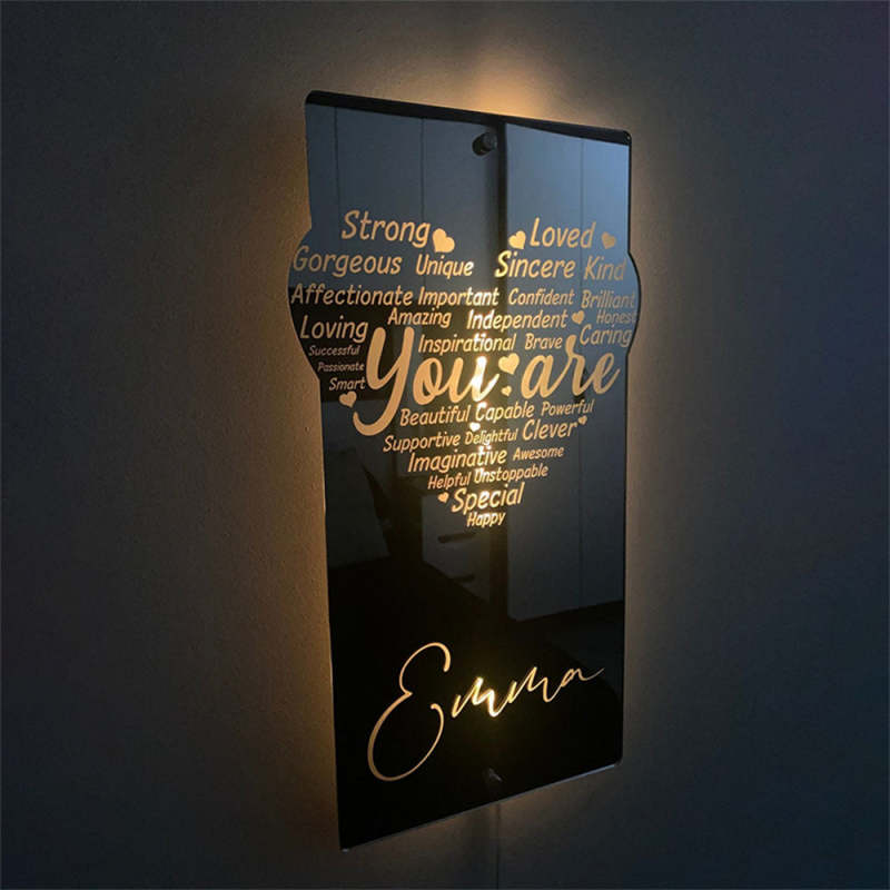 Custom Engraved Affirmation Heart Mirror Light Affirmations Mirror LED Neon Light Gifts Kids Mom Friend