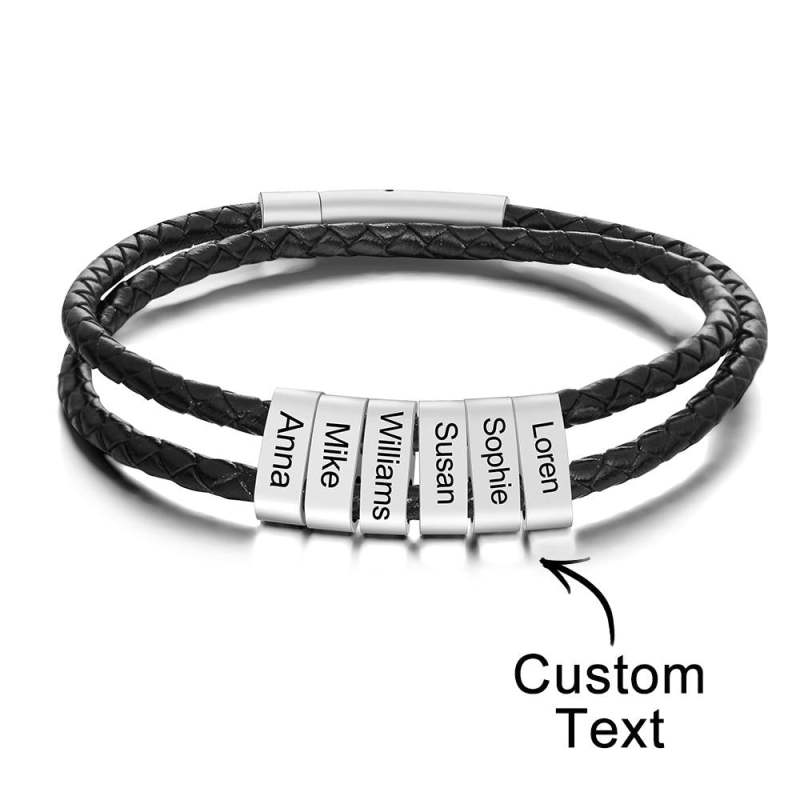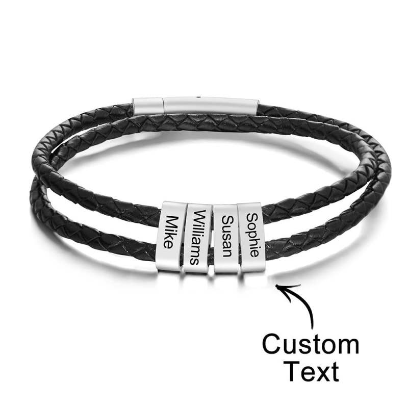 Custom Engraved Bracelet Beads Braided Leather Men's Gifts