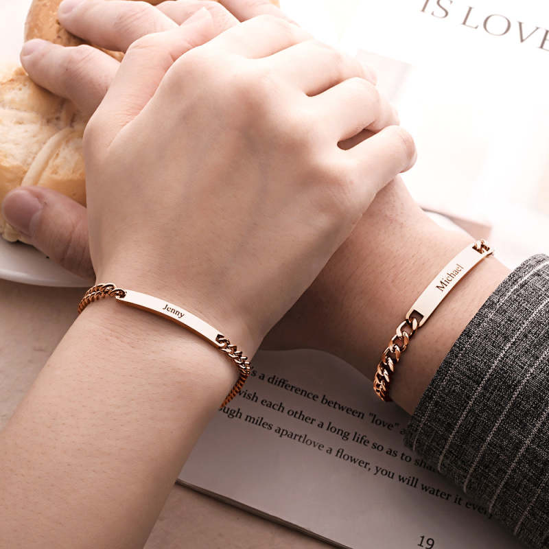 Our couples bracelets are made from high-quality stainless steel which means they are not only beautiful but also very durable. What's even more special is that we provide personalized engraving services. You can choose to engrave the bracelet with your and your partner's names, an anniversary, a little secret of each other, or even a love quote that only the two of you can understand. This kind of customization makes each bracelet unique, just like your relationship.