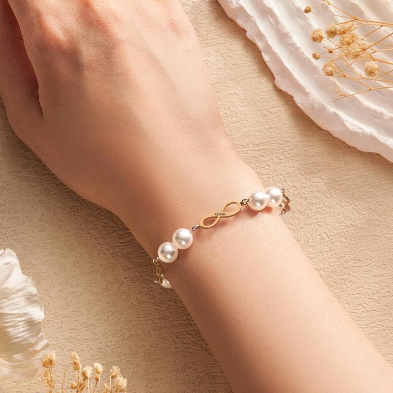Custom Engraved Bracelet Infinity Love Pearl Romantic Gift