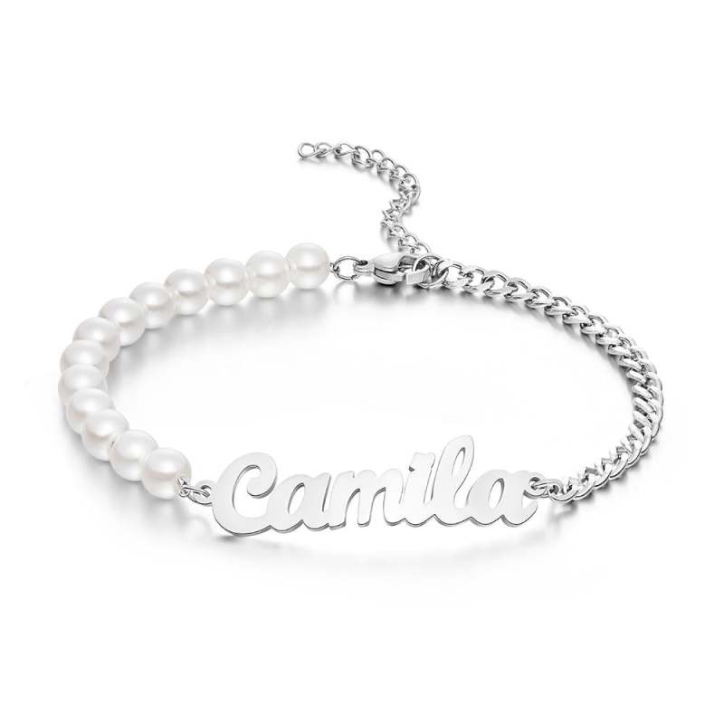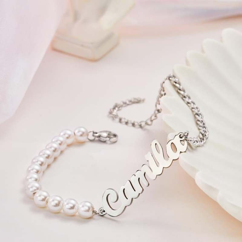 Custom Engraved Bracelet Pearl Chain Exquisite Gift