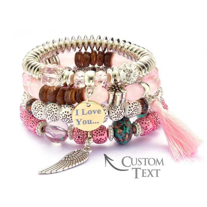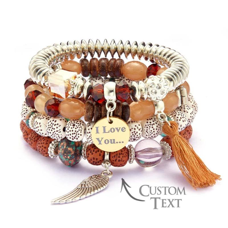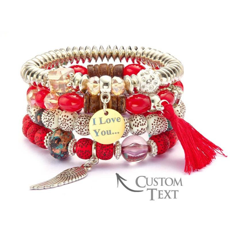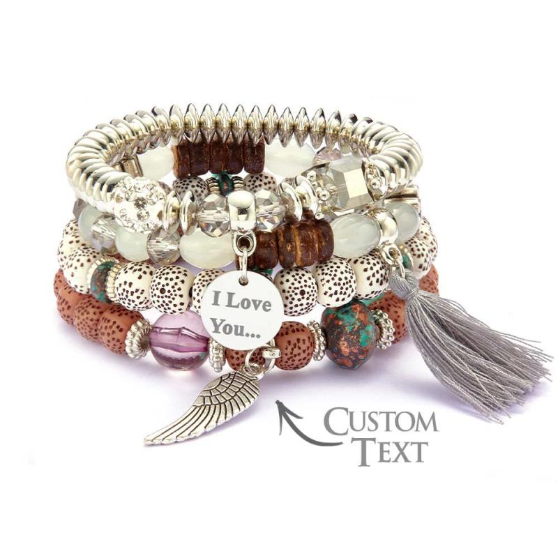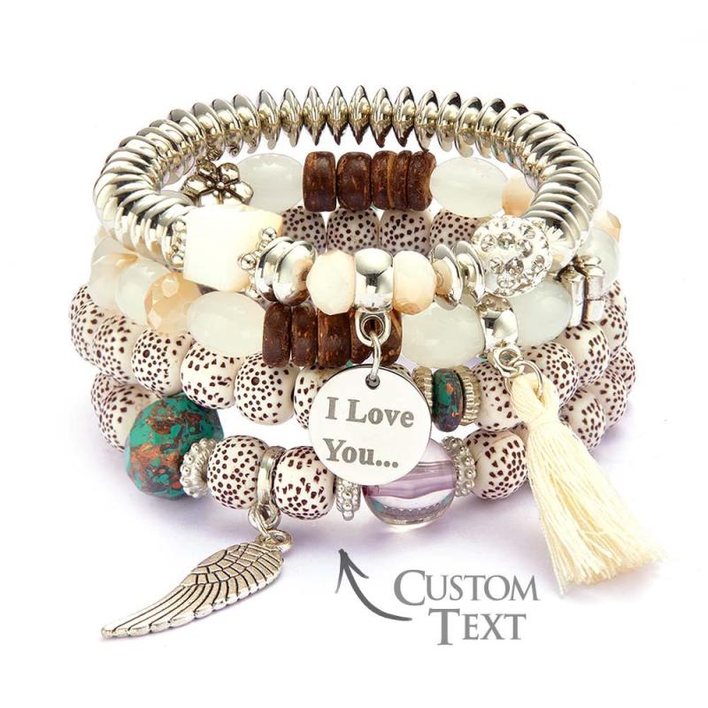 Custom Engraved Bracelets Bohemia Style Bead Gifts for Girl