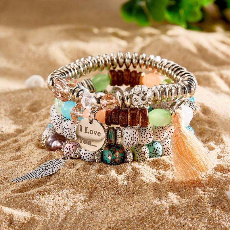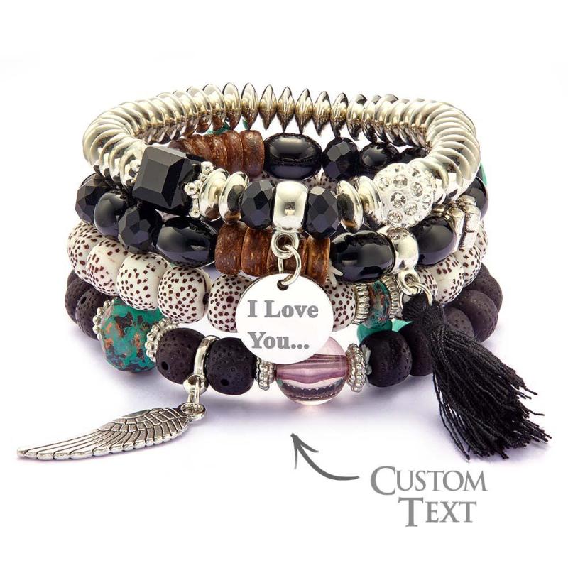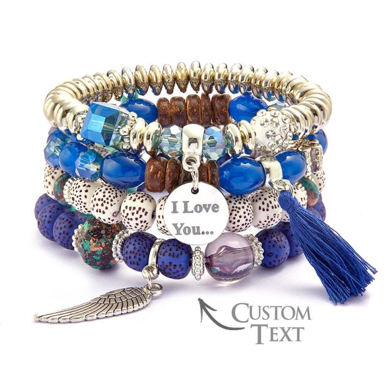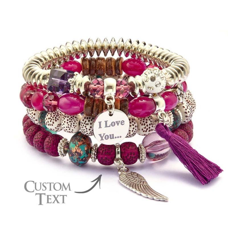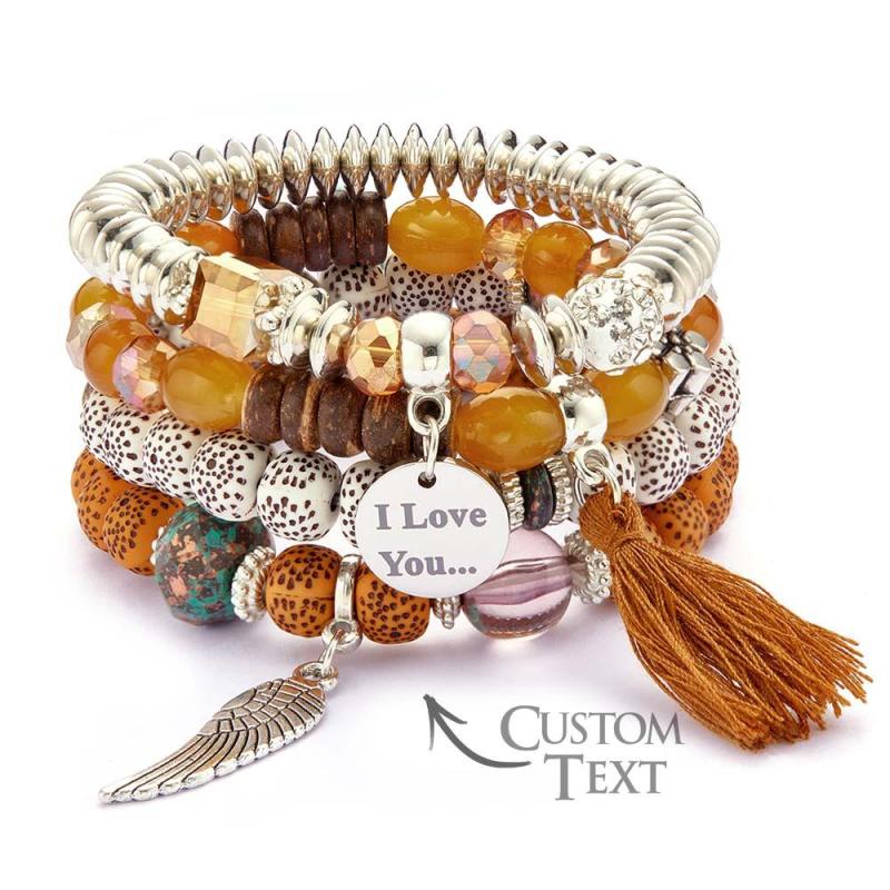 Custom Engraved Bracelets Bohemia Style Bead Gifts for Girl