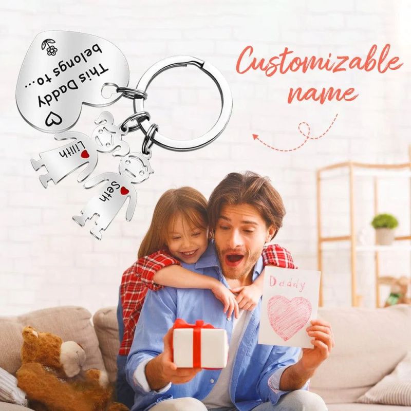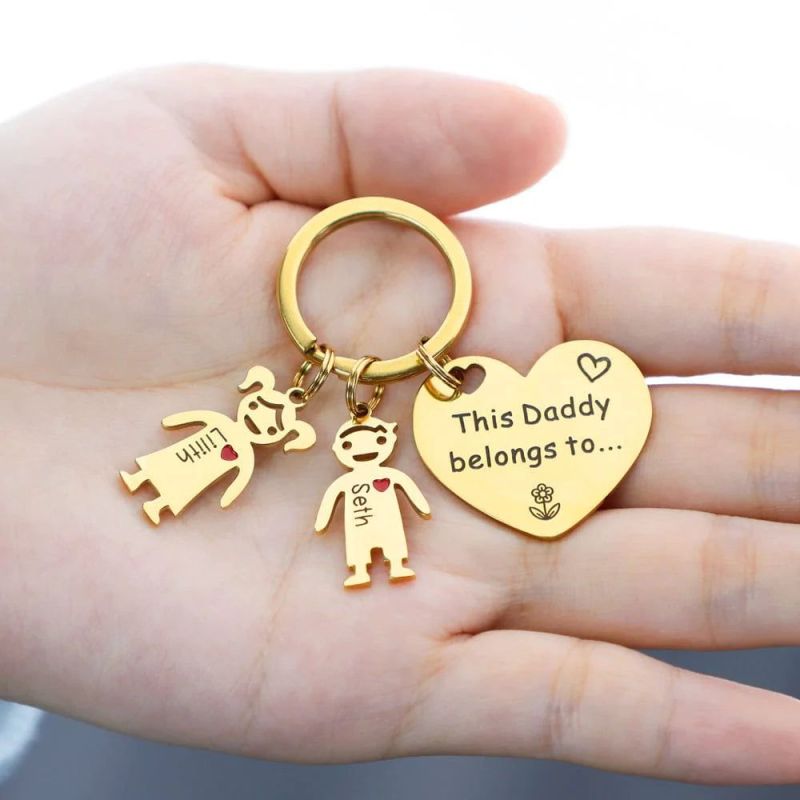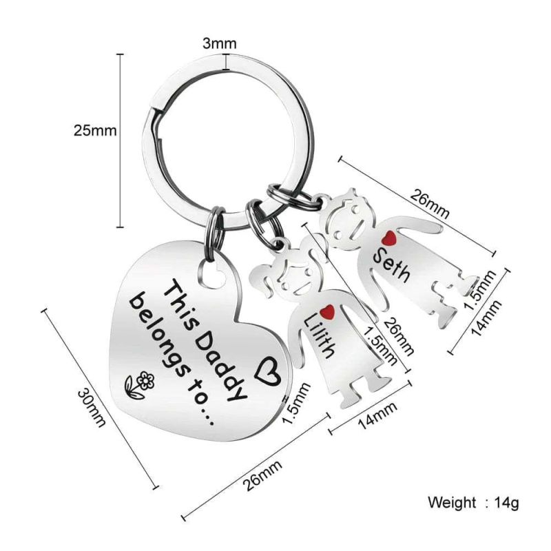 A thoughtful gift for your Mom where he will cherish your names on his keychain for a lifetime.