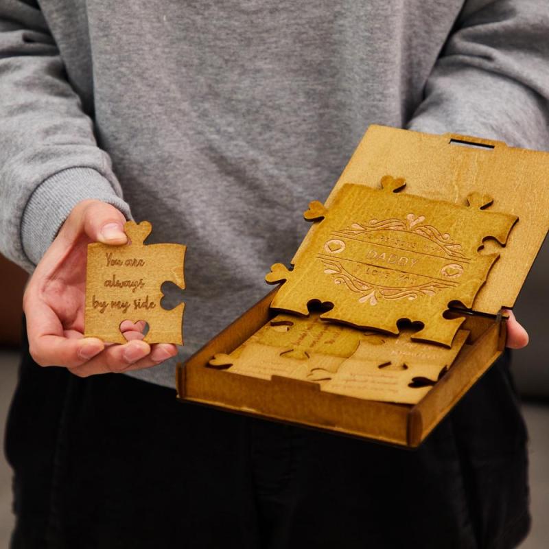 This wooden puzzle is a great gift for Thanksgiving, Valentine's day and anniversaries. The wooden box looks spectacular, so it will be a very expensive gift. There is a riddle in the box, 12 reasons why I love you. Every part of the riddle is engraved with the reason for love. In the middle of the riddle, there will be the name of the person you love. The product is safe in composition. This gift will be a good memory for many years. It is a warm gift for family and lovers.