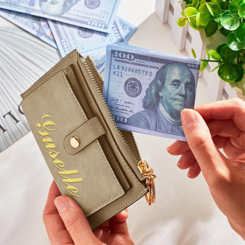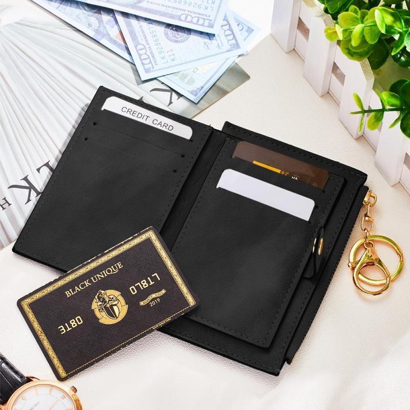 Personlized engraved card holder, with advanced fabric and the classic design makes the wallet even more stylish. With multiple card positions and zipper design, you can put cards, change, cash and other small items, very convenient. This mini wallet is the most essential accessory for everyone as it is stylish and convenient that is for setting off to shopping mall, beach, office, workplace or short travel.