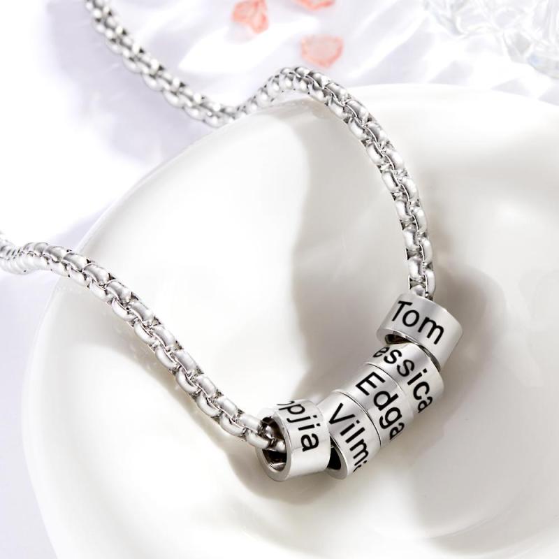 Custom Engraved Necklace Bead Collarbone Chain Men's Gifts