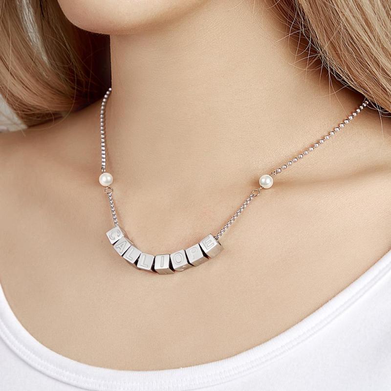 Custom Engraved Necklace Square Pendant Simple Man's Gifts