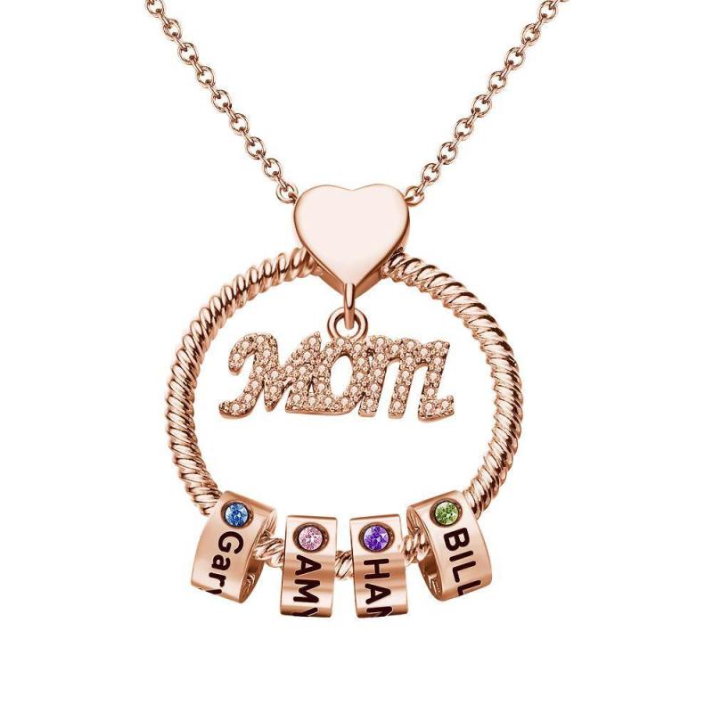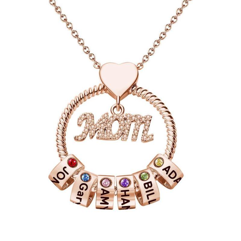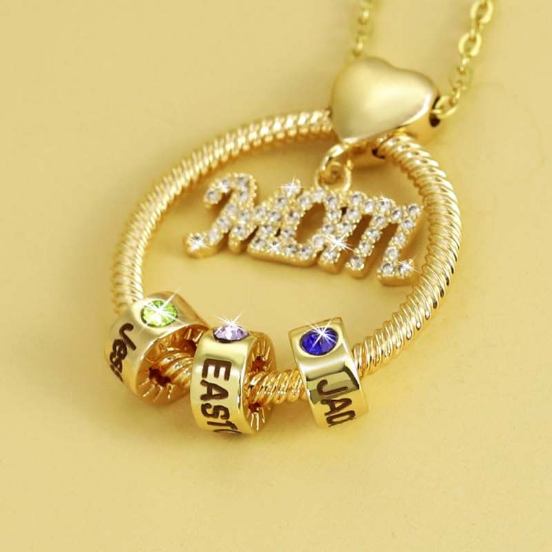 Mother's Love Necklace, gorgeous appearance and stylish details, the circle and the heart-shaped design, expresses infinite love for the child’s mother. Sparkling diamonds have always been a woman's favorite, with custom exquisite beads, it can customize up to 6 beads, each bead can be engraved with the names of lover and children, also inlaid with a colorful birthstone representing the month of children's birth. Amazing, mother's best gift!